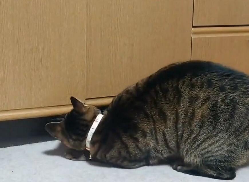 「前がダメなら下から入るニャ」とでも言いたげに、潜り込もうとする小雪ちゃん。しかしオヤツには出会えなかったようで……?
