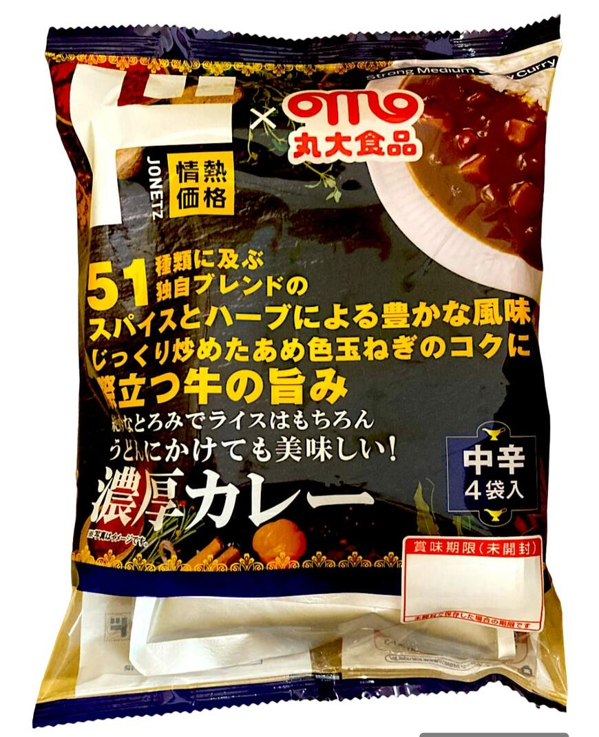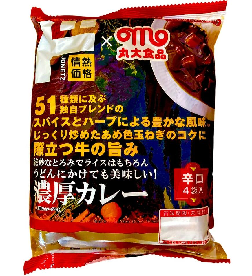 こちらも4袋入りで、1袋80.5円の高コスパ。辛いのが苦手な方や小さなお子様には丸大食品とコラボしたこちらの「情熱価格 濃厚カレー 中辛」がおすすめ。