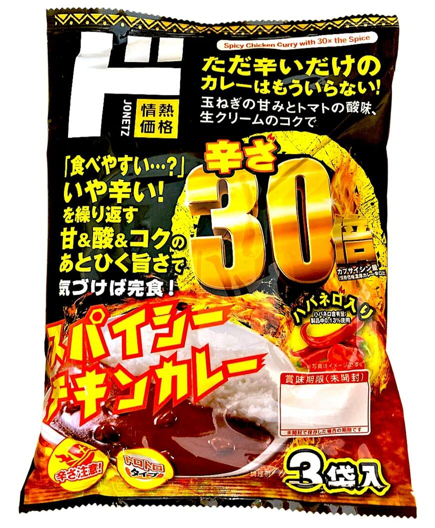 2.1 情熱価格 辛さ30倍スパイシーチキンカレー 3袋入322円(税込)