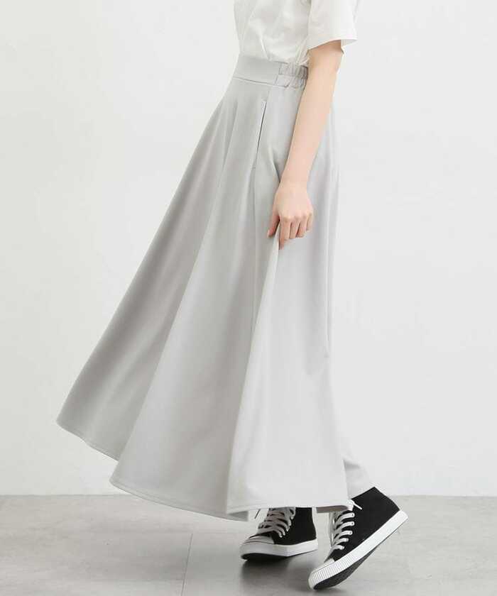 人気スタッフ「みむさん」との初コラボアイテムであるフレアスカート。広がりすぎないAラインのシルエットは、スタイルアップも叶えてくれます。幅広のウエストゴムは、くびれを強調。