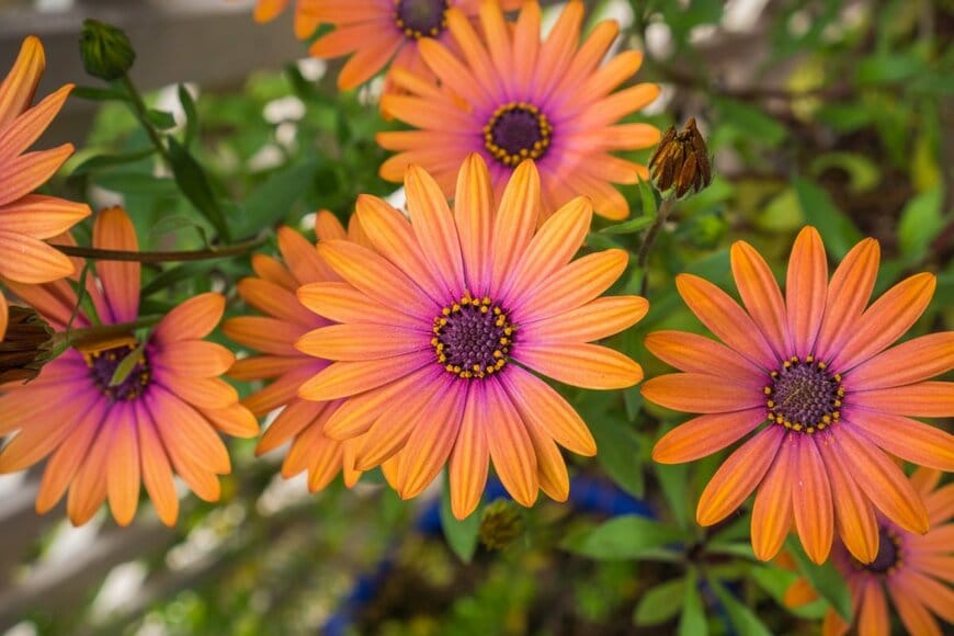 黄・オレンジ・ピンク・紫などカラーバリエーション豊富なオステオスペルマム。パッと開く花が元気いっぱいで、存在感バツグンです。