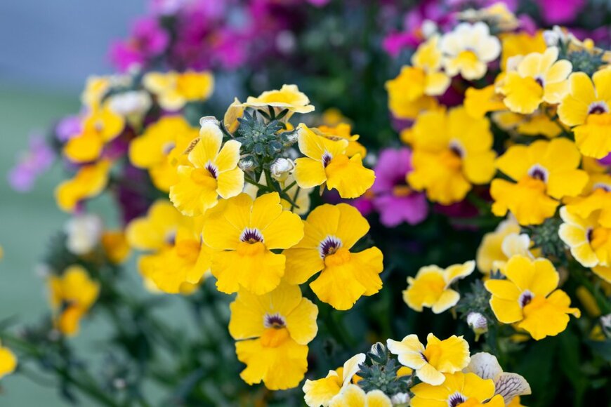 ひとつの花は小さめですが、ひとかたまりになって咲く姿が華やかなネメシア。1本の茎から分岐して数多くの花を開きます。
