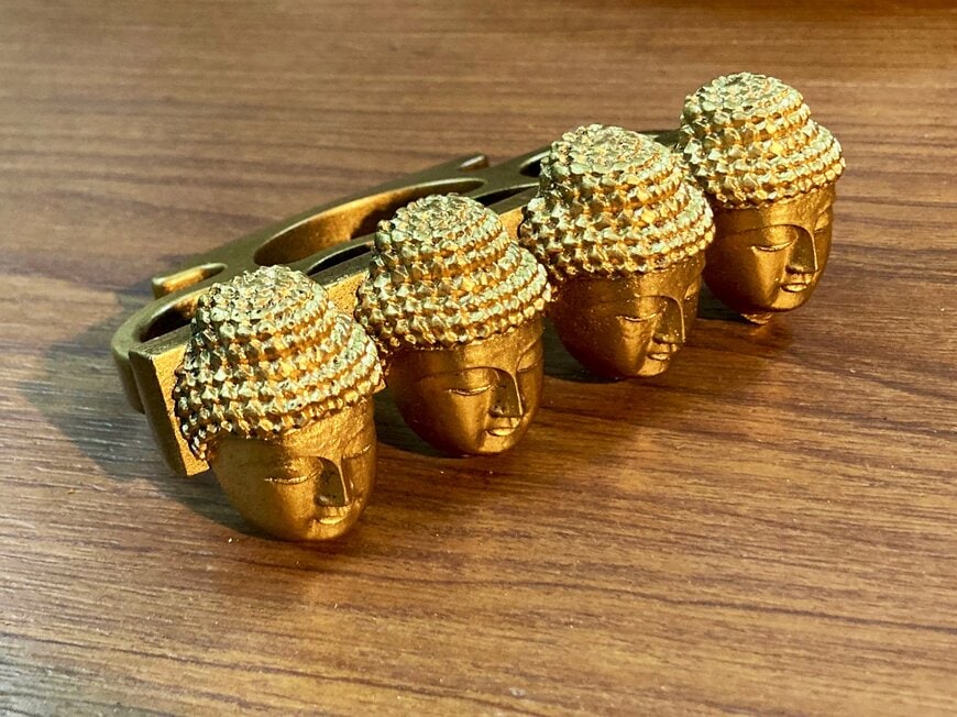 そこに映っているのは、4人の仏様の顔がついたゴールドのメリケンサック。通常のものより攻撃力が高そうに見えますが、シャレが効いたデザインに笑ってしまう人も多いのではないでしょうか。