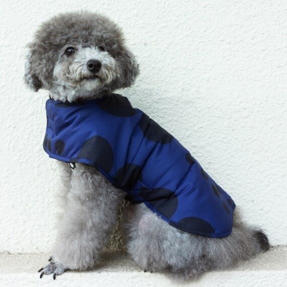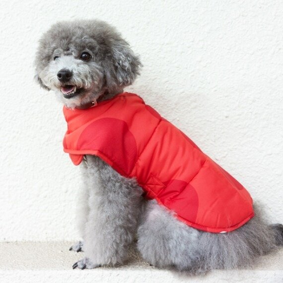 キルティング素材で厚手のドッグウェアです。中綿が入っているので、寒い日のお散歩もぽかぽか。首回り、胴回りはマジックテープで調整できます。撥水生地なので雨の日のお出かけも安心です。