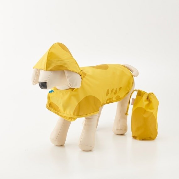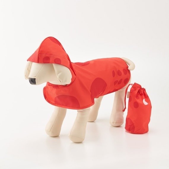 丸の模様が特徴的なペット用ポンチョです。軽いので動きやすく、雨の日でも楽しくお散歩できます。撥水加工で犬が濡れてしまう心配もありません。