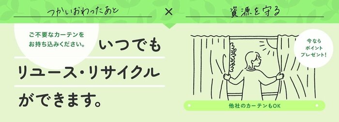 ニトリは2021年より、使い終わった不要なカーテンを回収する取り組みを開始しています。「不要だけど捨てるのはもったいない」という声に応えること、限りある資源を守ることが目的です。