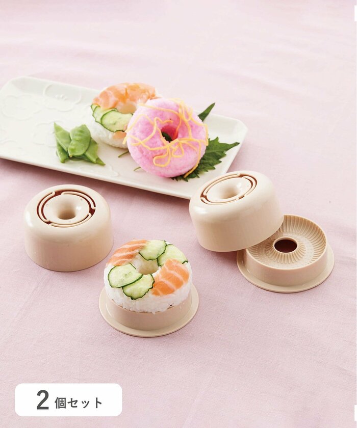 ご飯を詰めてキュッと抑えるだけで、きれいなドーナツ型のお寿司が作れるアイテムです。手作業では難しい形成も、型を使えば一発OK!簡単なので子どもと一緒にデコレーションを楽しむこともできますよ。