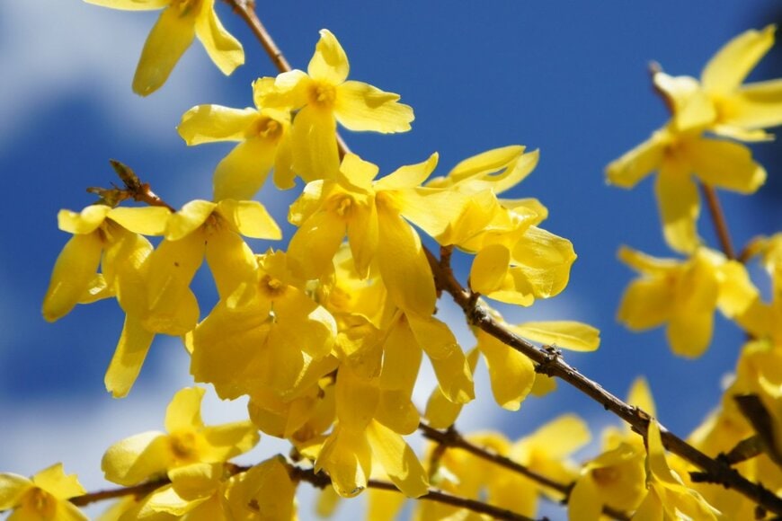 黄金色の花が早春の風景にひときわ明るい輝きを放つレンギョウ。身近な野山に自生し、庭木としても古くから親しまれてきました。やや湿り気のある土壌で育てましょう。