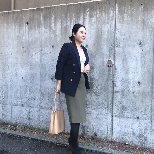 マニッシュな雰囲気漂うダブルジャケットは、羽織るだけで上品な雰囲気に。一見カチッとしたデザインですが、ウエストのシルエットや金ボタンのディテールで女性らしさが増す優秀アイテム。お尻に少しかかるくらいの長さなので、体型カバーも可能。