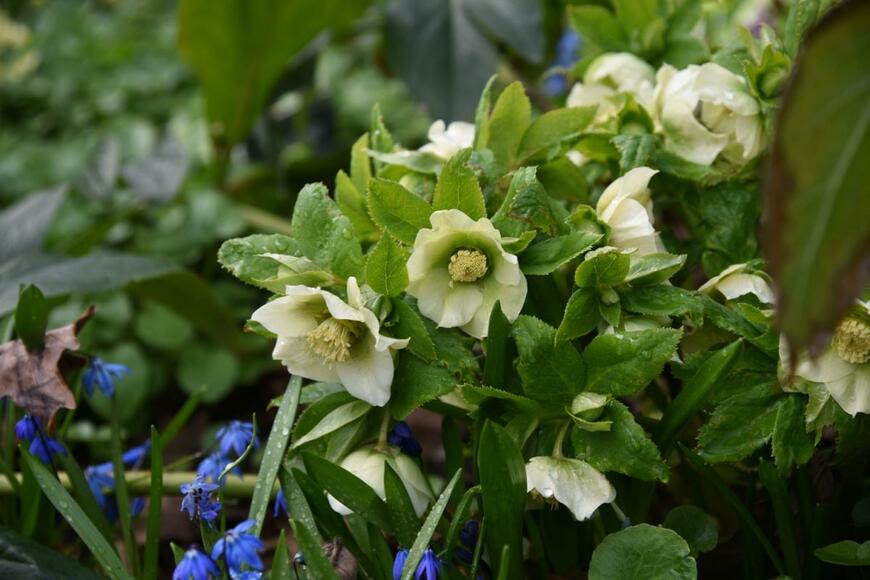 どちらかというと年月をかけてゆっくり生長し、クリスマスローズのさまたげにならない植物を選びましょう。