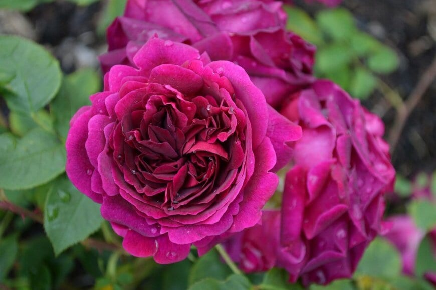 ルージュ・ピエール・ドゥ・ロンサールは花弁の重なりがゴージャスなロゼット咲きのバラ。