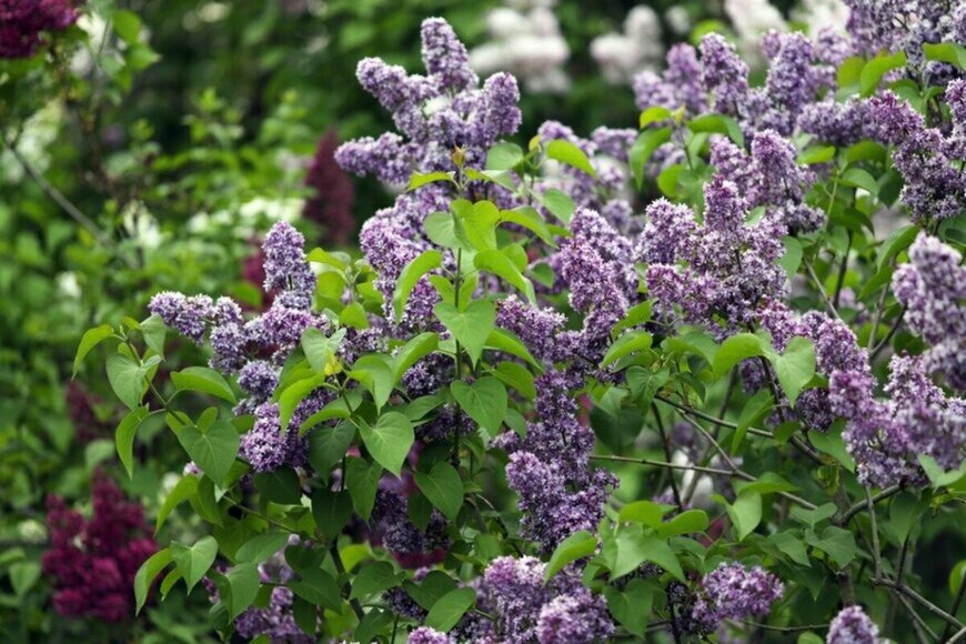 花期が長く、冷涼な地域の代表的な庭園木であるライラック。ハート型の葉に、紫やピンク、白の花がこんもりと咲く可愛らしい姿に加え、甘い香りも愛されています。