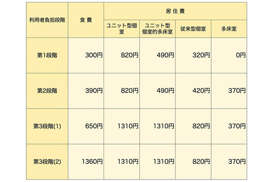 負担限度額は所得段階、施設の種類、部屋のタイプによって異なります。