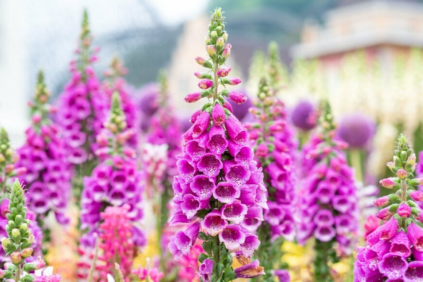 フロックスは草丈50~70センチで房状に咲く花がゴージャス。日当たりと風通しのよい場所で育てましょう。