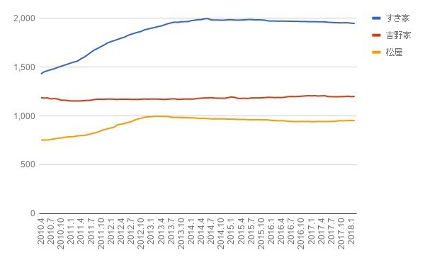 牛丼チェーンは店舗数全体で見るとやや飽和状態にありますが、既存店ベースで見れば、客数を意識しながら単価をいかに上げていくことができるかというのが各社の経営の目線ではないでしょうか。