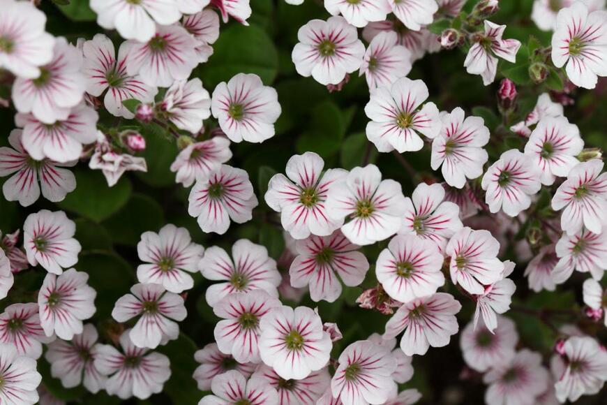 春から初夏にかけて、白く可憐な小花をたくさん咲かせるカーペットカスミソウ。ナチュラルガーデンの小道沿いや玄関アプローチなど、あまり高さを出したくない場所のグランドカバーにおすすめです。