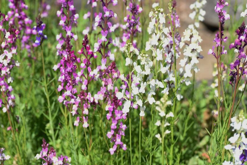 キンギョソウに似た、小さくかわいらしい花を咲かせるリナリア。花色は白、ピンク、紫、黄色、赤、オレンジなどで、春から初夏の花壇やプランターを鮮やかに彩ってくれます。多年草の品種もありますが、ここでは一年草の品種についてお伝えします。