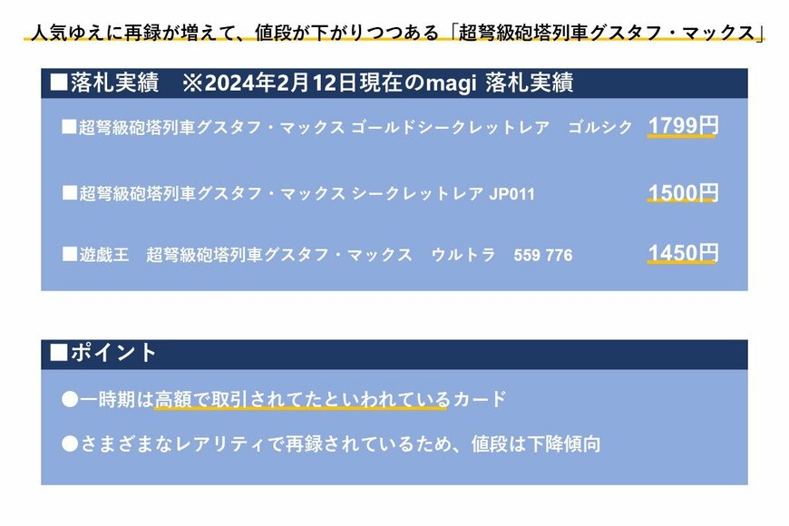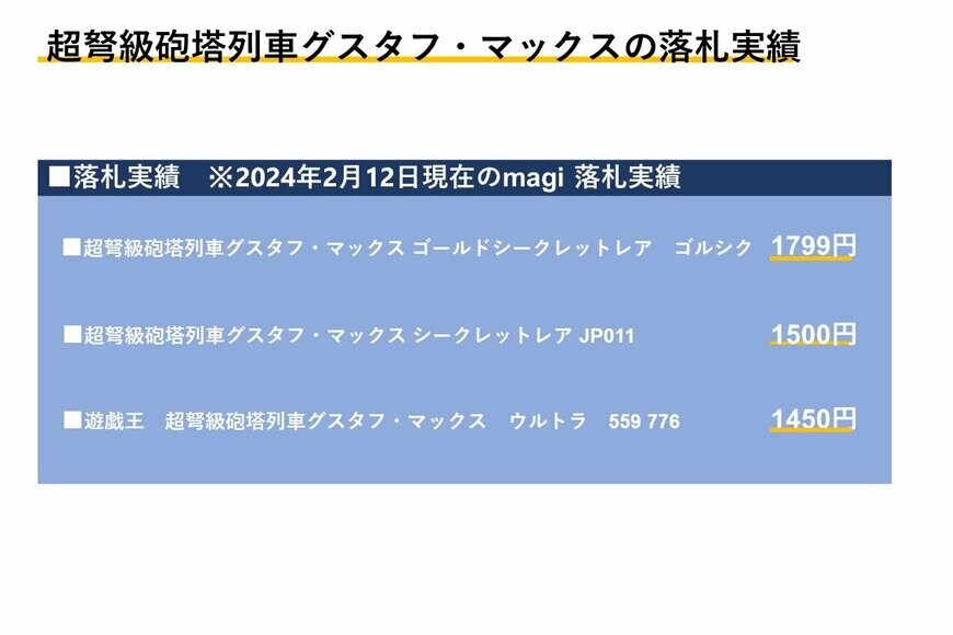 2. 超弩級砲塔列車グスタフ・マックスの2024年2月12日現在の価格動向※「magi」実績