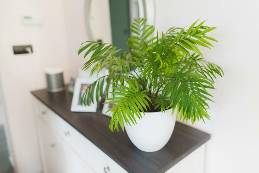 テーブルヤシはヤシの木をコンパクトにしたような樹形が人気。部屋が南国ムードに満たされ、まるでリゾート地でくつろいでいるかのような気分を味わえるでしょう。
