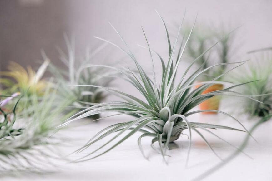 エアプランツは土に植えずに転がしておいても枯れない不思議な植物。ワイヤーで吊るしたり、小物のように棚に飾ったりして楽しめます。