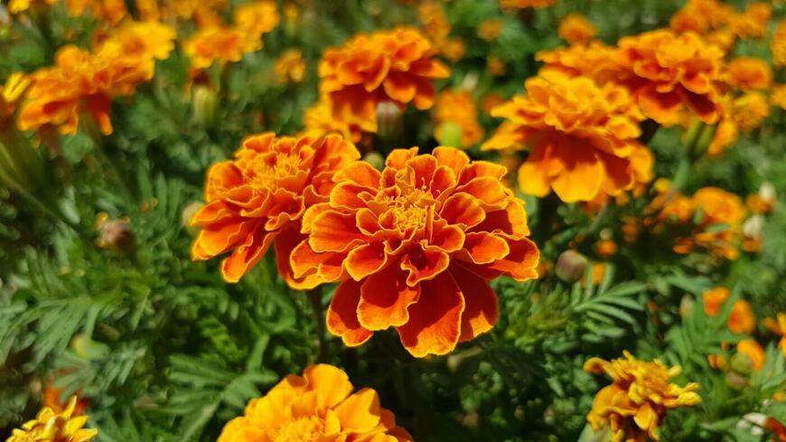 鮮やかなオレンジやイエローの花を咲かせるマリーゴールドは春まき一年草の代表選手。明るく華やいだ雰囲気を演出してくれます。