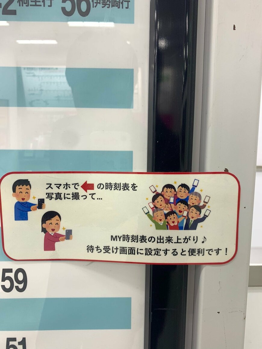こちらを読んだ埼玉のかつどんさんは、「写真だとQRコード読み込みで時刻表を表示するよりも遥かに早く済む、良いな!」と思ったのだそう。確かにQRコードの読み込みには少々時間がかかるため、ストレスに思う方も多いはず。