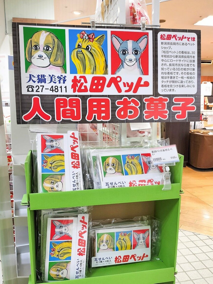 新潟出身のj-rakudaさんが、新潟のお土産を中心に販売しているフロアに立ち寄ったところ、なじみのある「松田ペット」のイラストを見つけたそうです。