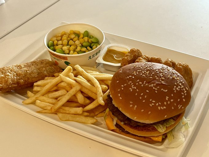実はこちらはKazuhoさんが、マクドナルドのメニューを組み合わせて作ったもの。「マックの内弁当」の写真を参考に使用されたメニューをテイクアウトして、オフィスの休憩室で再現したそうです。