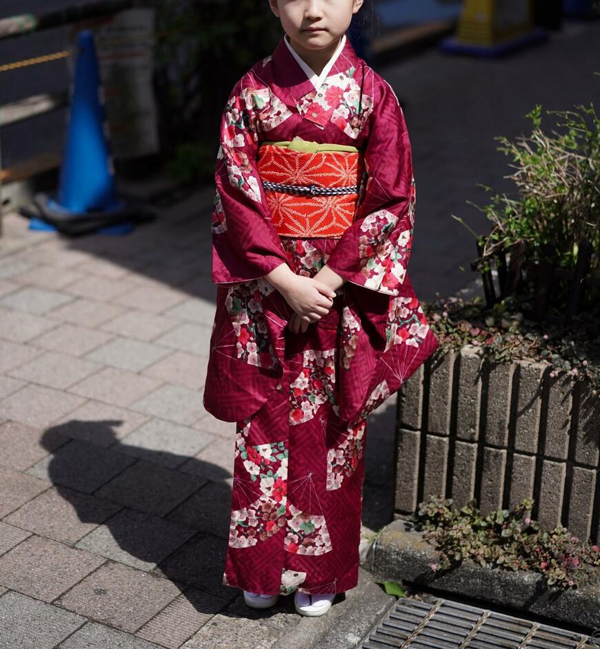 投稿主の@yuzoo_kさんによると、娘さんが着用していた着物はオフハウスの着物売り場、帯は骨董市で見つけたものとのこと。