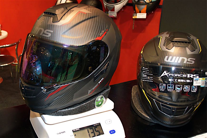 同じサイズの帽体を使うとなると重量も気になるが、ショウエイのフルフェイスヘルメットと比べてみると、フラッグシップモデルの「X-fourteen(6万円)」では、1,489~1,791g。軽量コンパクトなツーリングモデルの「Z-7(4万5000円~5万3000円」は1,289~1,478gとなる。トライカーボンの「A-FORCE(3万3000円)」の1,250g(±50g)が、どれほど軽く低価格なのかがわかるだろう。