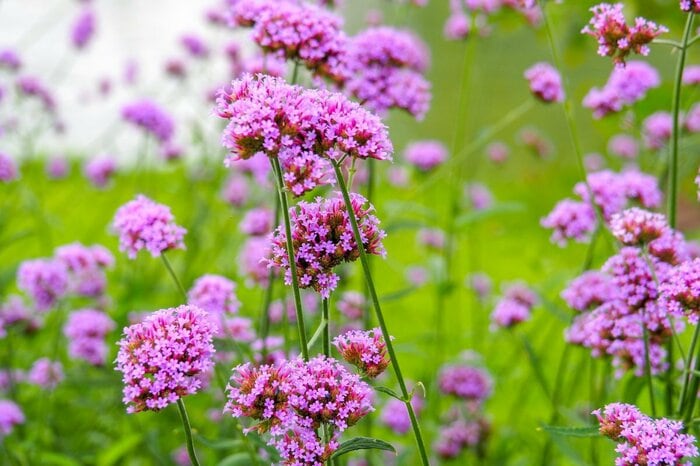 バーベナは春から晩秋まで長く開花する一年草、品種によっては多年草です。繊細な見た目とは逆に性質が強靭で、夏の庭でも元気に花を咲かせ続けます。