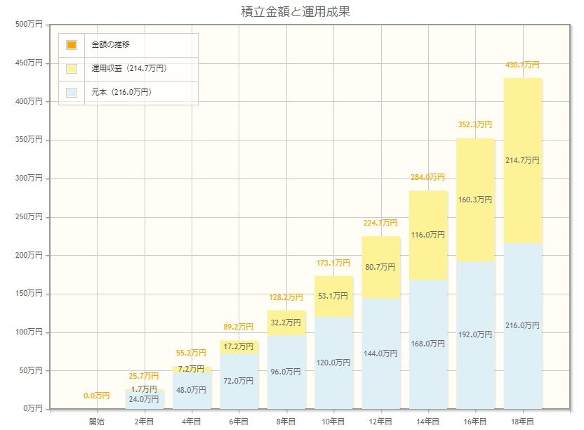 今回は、毎月1万円ずつ、18年間積み立てたケースを想定し、利回りごとにシミュレーションを行います。