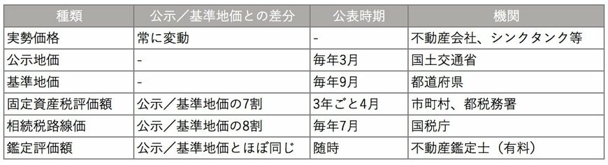 - 固定資産税評価額・・・固定資産税などの課税のために市町村や都税務署によって算出される。