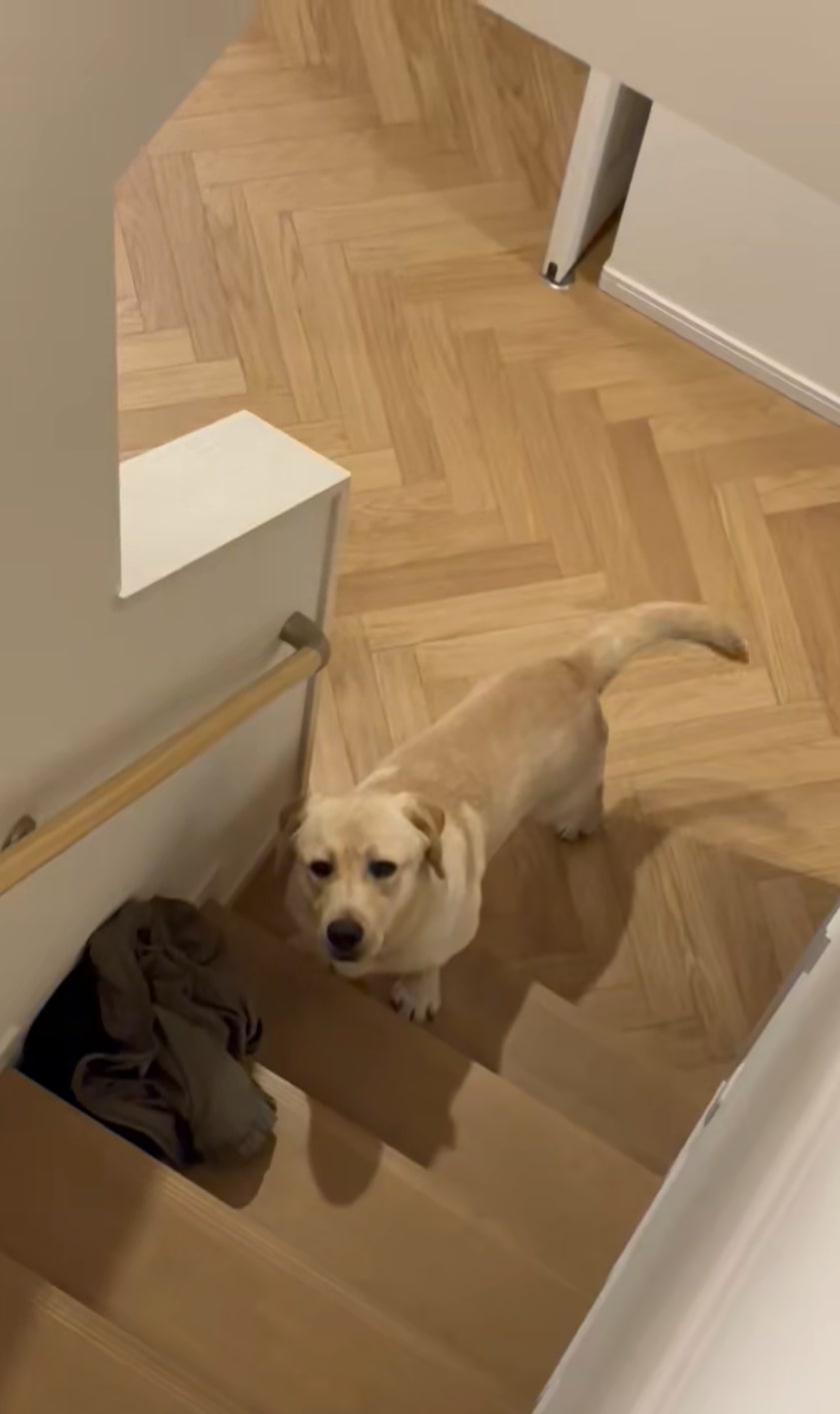 階段から降りられなくなっていたのは、@yokozuna_labさんと一緒に暮らすラブラドールレトリバーの「横綱」。