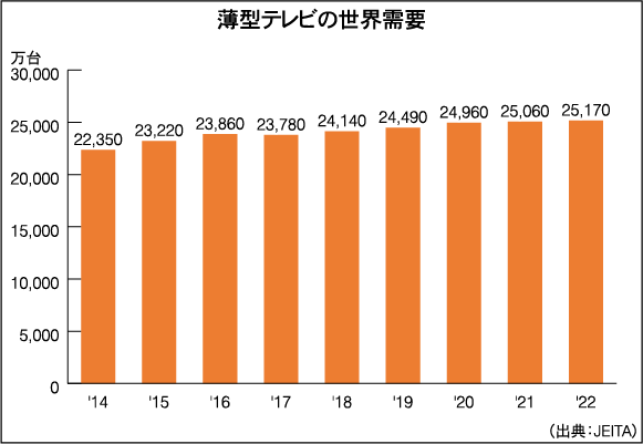 電子情報技術産業協会(JEITA)は、2022年までの「AV&IT機器世界需要動向」を公開した。今回はそのなかから、薄型テレビに焦点を当て、今後の市場動向を探ってみる。調査協力は㈱富士キメラ総研が担当した。