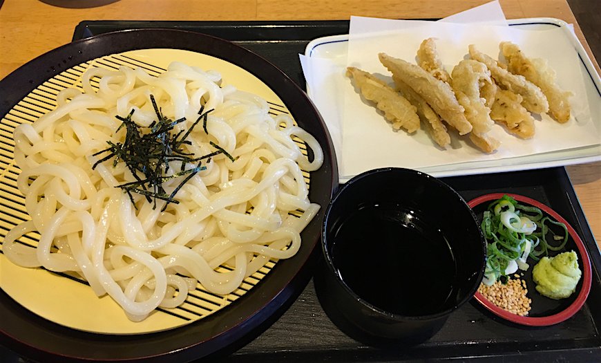 - 好みの天ぷらをチョイスする冷ざるうどんの人気が高い