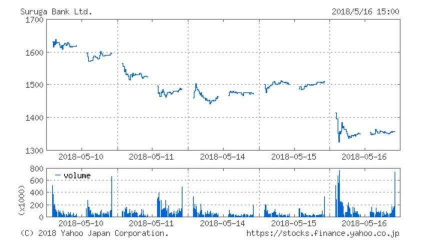 なお、社内調査の結果発表を受けて、翌16日のスルガ銀行の株価は一時▲14%安(前日比)に迫る暴落となり、終値も▲10%超安で引けました。