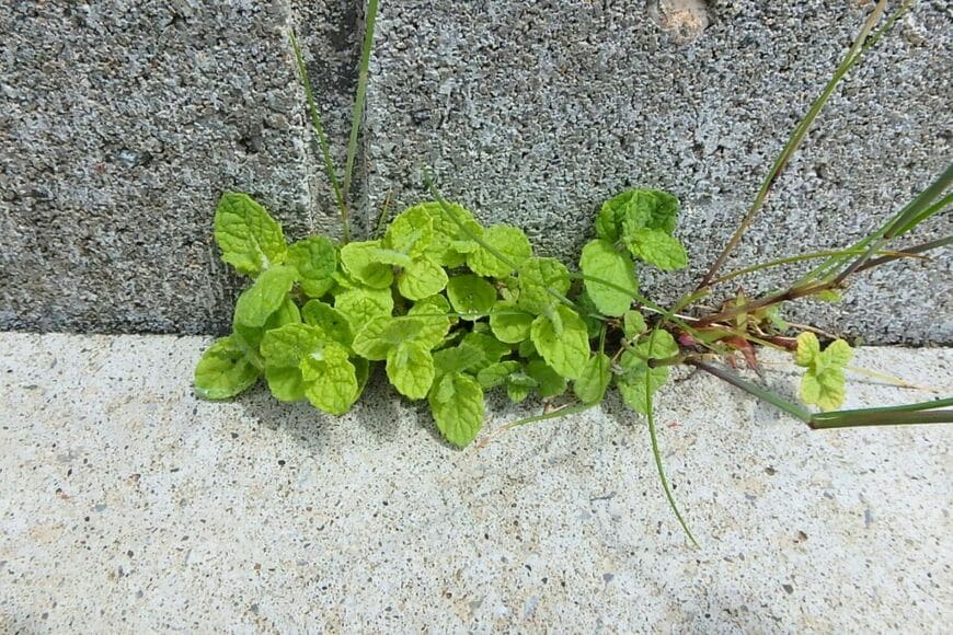 記者は鉢植えでアップルミントを育てていますが、毎年植木鉢が地下茎でパンパンになります。また、写真のようにいつの間にか離れた場所から生えてくることもあります。
