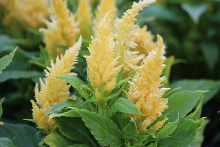 鮮明な花色で夏花壇を美しく彩るケイトウ。黄色や赤、濃いピンクや複色など多くのカラーがあり、いずれも高温多湿に強く晩秋まで長く開花を続けてくれます。
