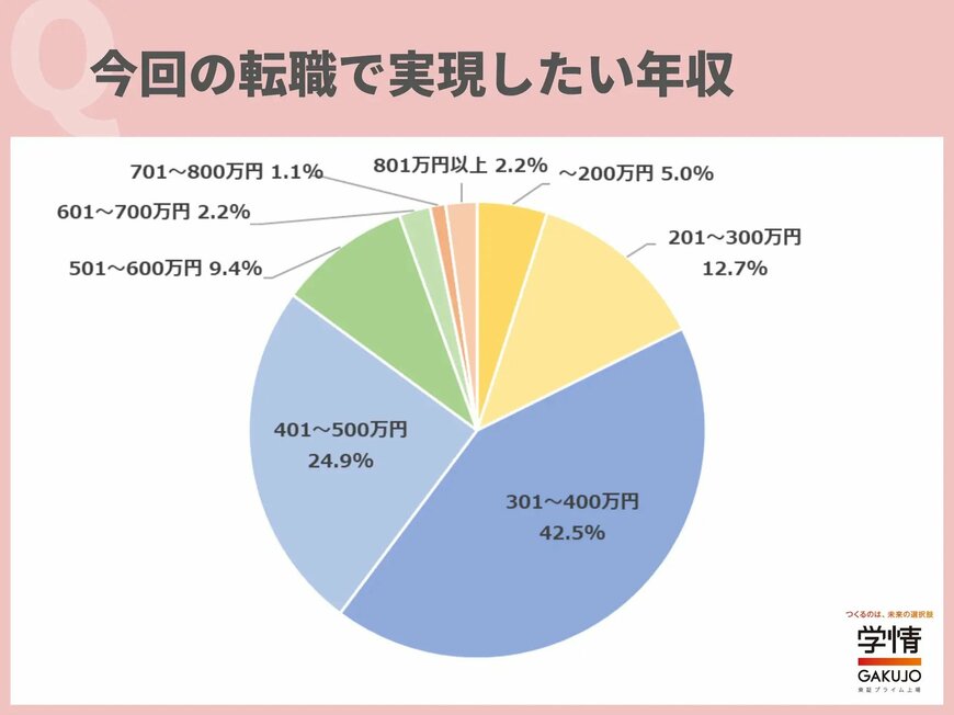 転職を考える20歳代社会人が実現したい年収は「301〜400万円」が42.5%で最多。