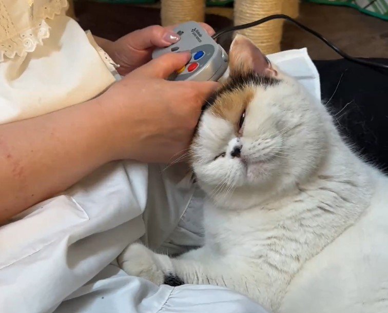 あんみつちゃんは、かわいいお顔を前に出して、コントローラーを持つお母さんの手に「スリスリ」。あんみつちゃんは勢いよく頭を摺り寄せていて、操作もままならないようです……!
