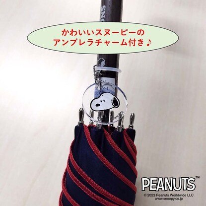 スヌーピーのアンブレラチャームが付いたジャンプ傘です。スヌーピーのワンポイント柄がかわいいシンプルなデザイン。片手でラクラク操作ができる、ワンタッチジャンプ式。軽く丈夫で折れにくいグラスファイバー骨を使用しています。