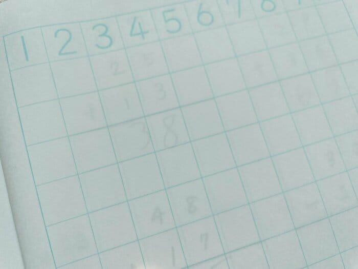 筆算を書いたページの上から真っ新なページを重ねてみると、数字が透けて見えました。大手メーカーの学習帳より、正直気になります。