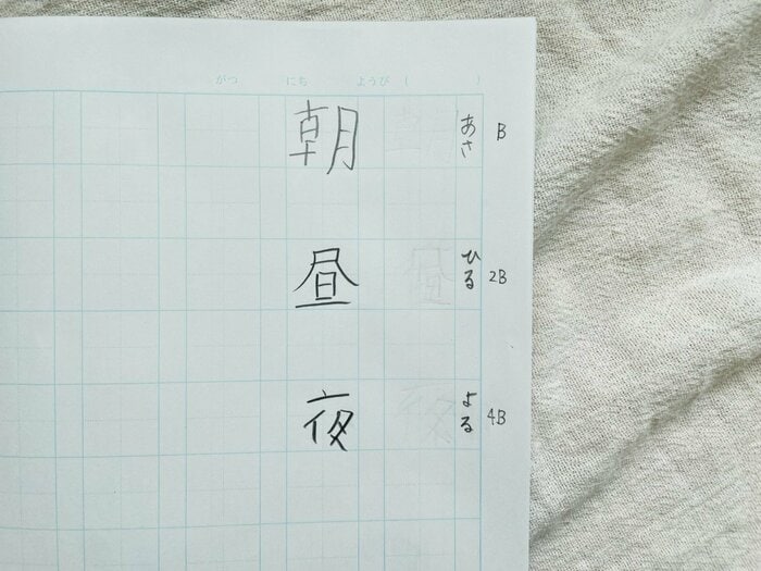 B・2B・4Bの鉛筆で書いた文字を消してみることに。紙は薄めであるものの、消しゴムを使ってもぐしゃぐしゃにはなりませんでした。消した文字の跡は、少し残っています。