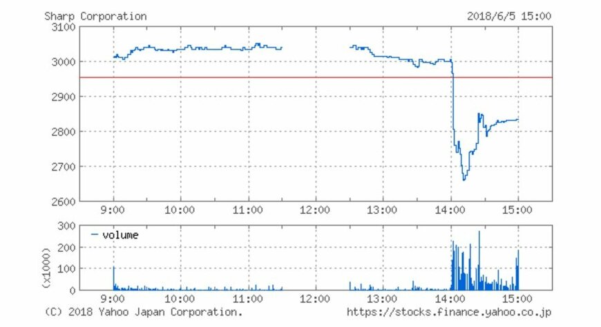 また、取引時間中に大型増資の観測報道が流れたシャープ(6753)は、堅調に推移していた株価が一転して急落し、一時▲10%超安となる暴落となっています(注:大引け後に正式発表済み)。