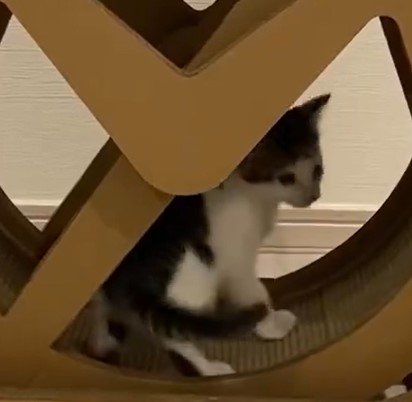 走りを止めて、ホイールの動きを不思議そうに楽しむ様子も愛らしいです。そんな子猫時代のトレーニング風景は、Xを通して大勢を癒した様子。