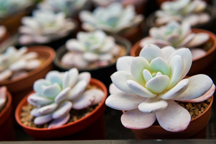 非常に多くの種類がありますが、葉の先がピンク色に染まる「桃太郎」や、白肌の美しい葉をもつ「ラウイ」などは初心者でも育てやすい品種。
