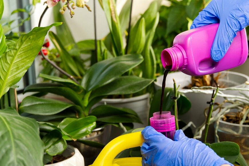 量や濃度の調整が難しい液体肥料ではなく、土の上に置くだけでよい固形肥料がオススメ。記載されている量や頻度を守ることが大切です。