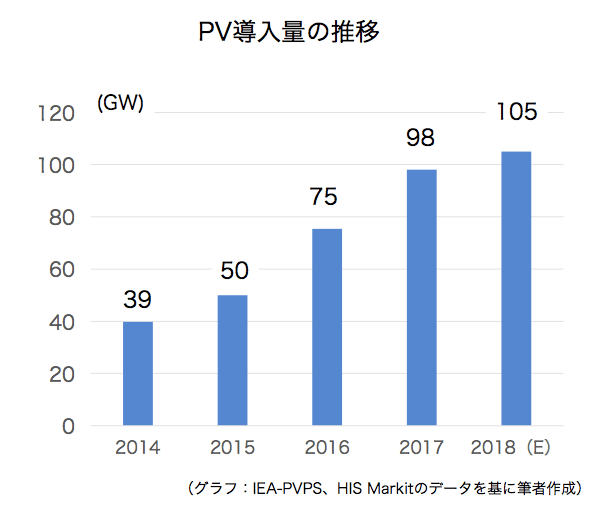 2017年、PVの年間導入量がついに100GWの大台に達した。最大市場である中国の成長に依存している側面もあるが、インドをはじめとする新興市場も相次ぎ立ち上がっている。発電コストが下がったことで、補助金などに頼らない自律成長も見えてきた。