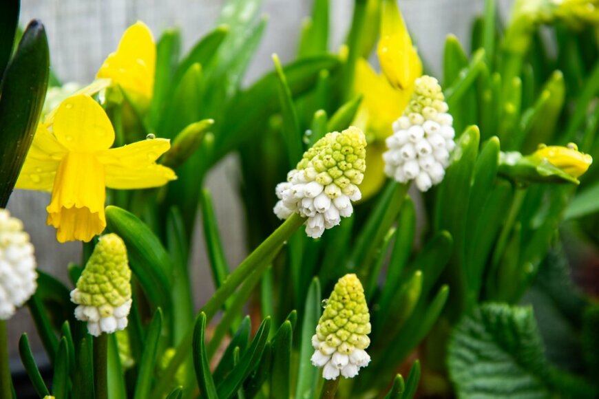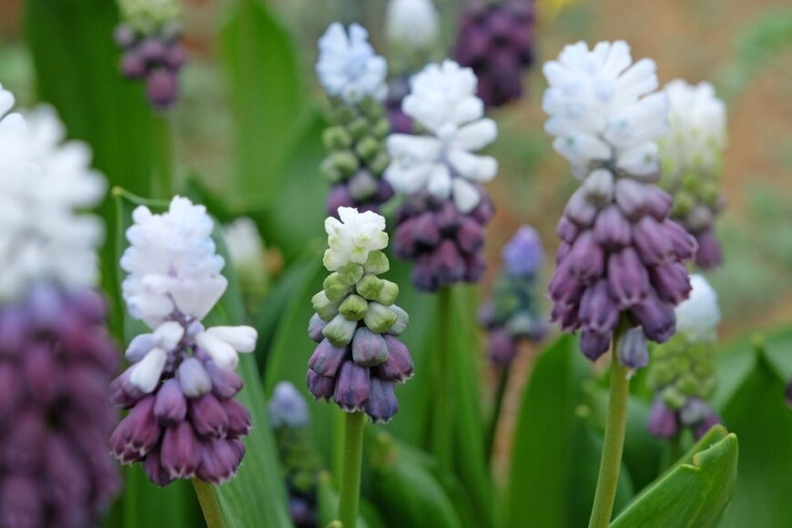 ブドウの房のような花が可愛らしいムスカリは、植えっぱなしでも育てられる球根植物です。